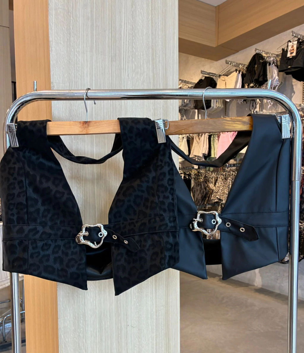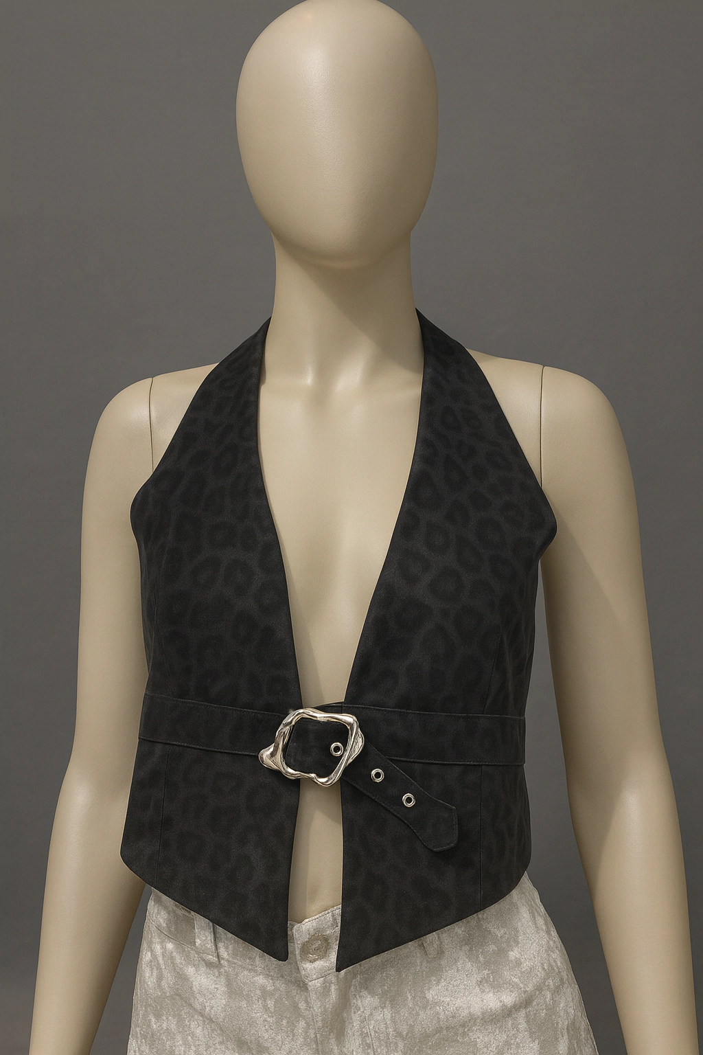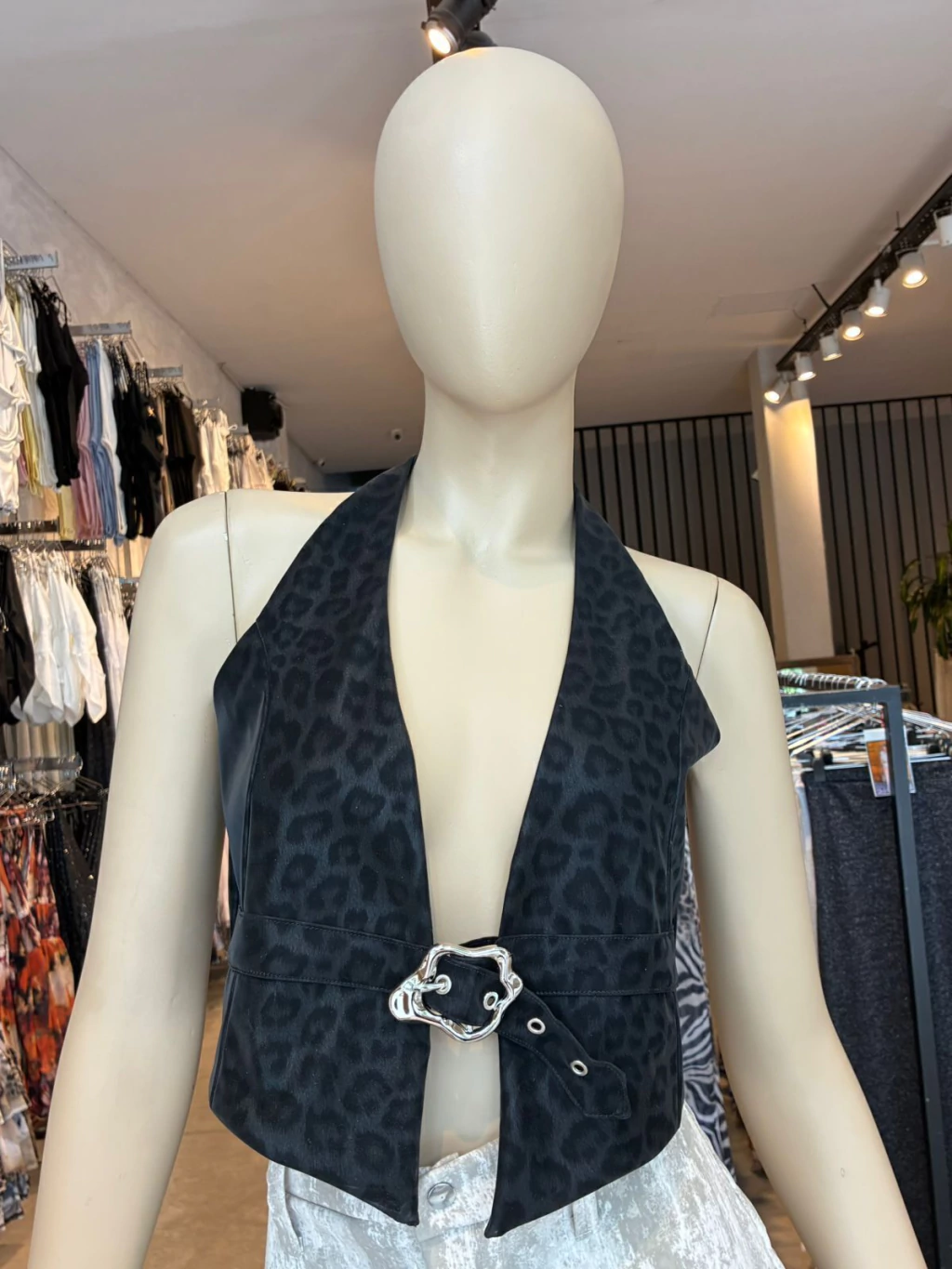 Chaleco Cuero Aplique Ovalo. Talle Único.