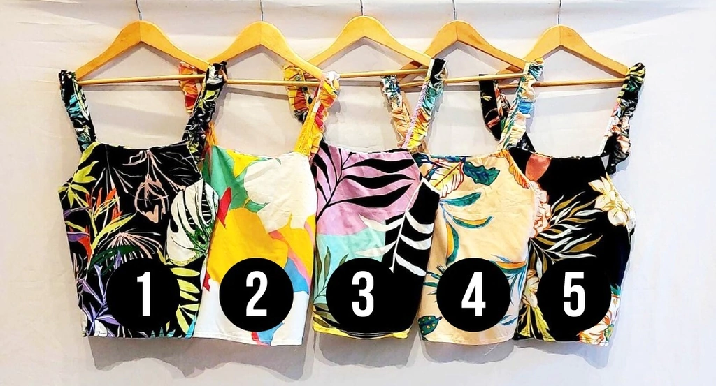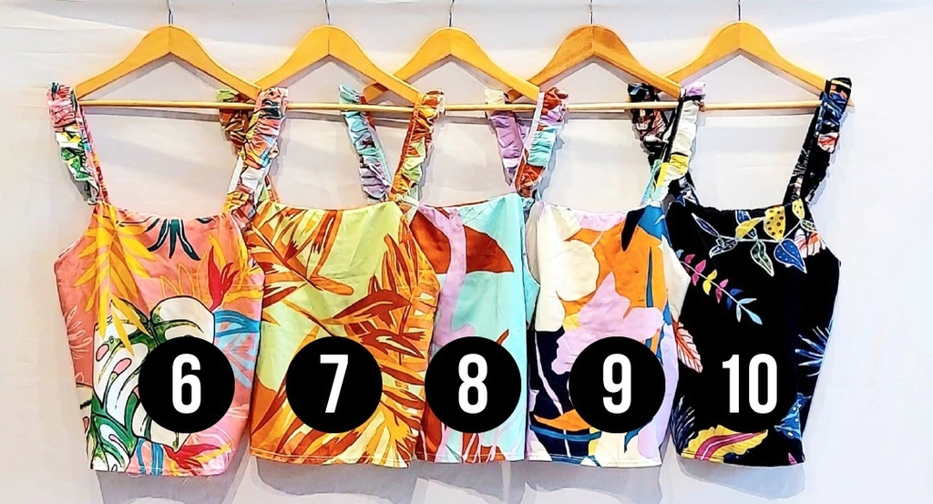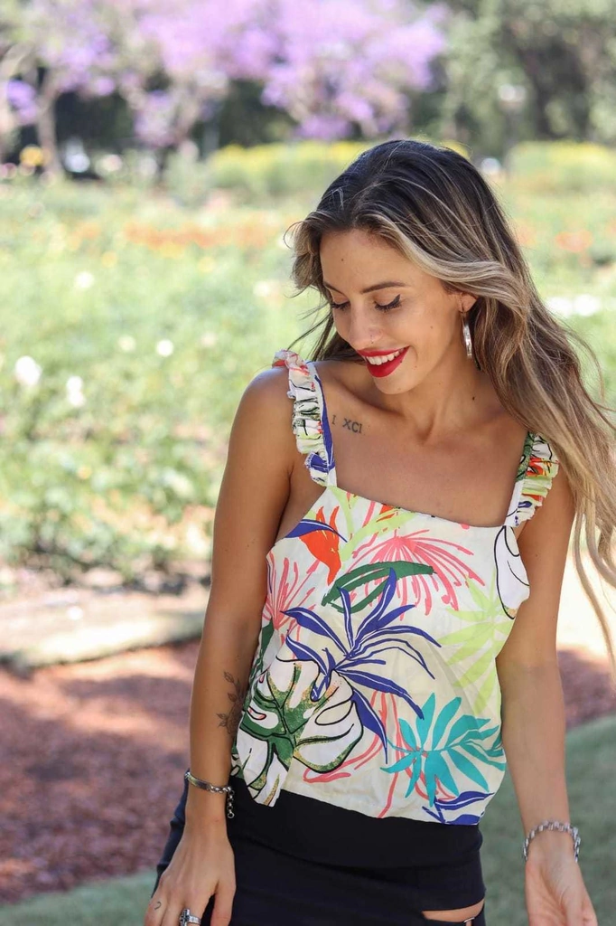 Top Fibrana Estampado Volados. -Talle Único.